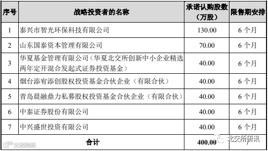 参与本次发行的战略投资者与限售期: