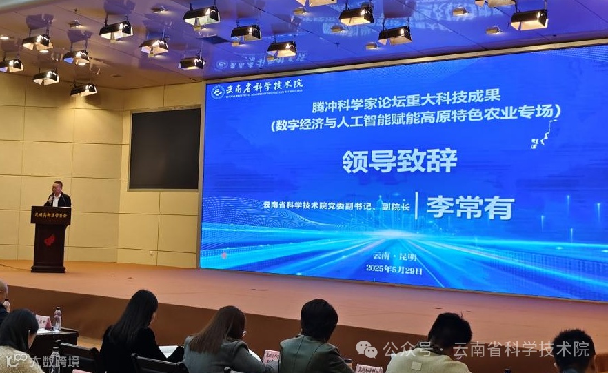 为推动腾冲科学家论坛重大科技成果转化落地,助力科技创新支撑云南高原特色农业智能化转型,为园区经济高质量发展提供创新动能,2025年5月29日腾冲科学家论坛重大科技成果对接活动——数字经济与人工智能赋能高原特色农业专场在昆明高新区成功举办。本次活动由云南省科学技术厅指导,云南省科学技术院、中国科学院昆明分院、昆明高新技术产业开发区管理委员会、昆明市市场监督管理局(知识产权局)主办。云南省科学技术院党委副书记、副院长李常有,中国科学院昆明分院副院长张教林,昆明高新技术产业开发区党工委委员、管委会副主任魏乾出席活动。