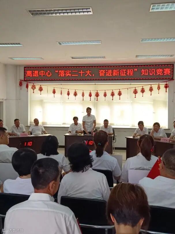 “坚持改革开放,是中国的强国之路。这个说法是否正确。请抢答,3.2.1开始!”7月7日,一场别开生面的“落实二十大,奋进新征程”知识竞赛活动在离退休管理中心一楼大厅如火如荼的进行,在流利的答题声中,重温党的二十大精神和《中国共产党章程》。