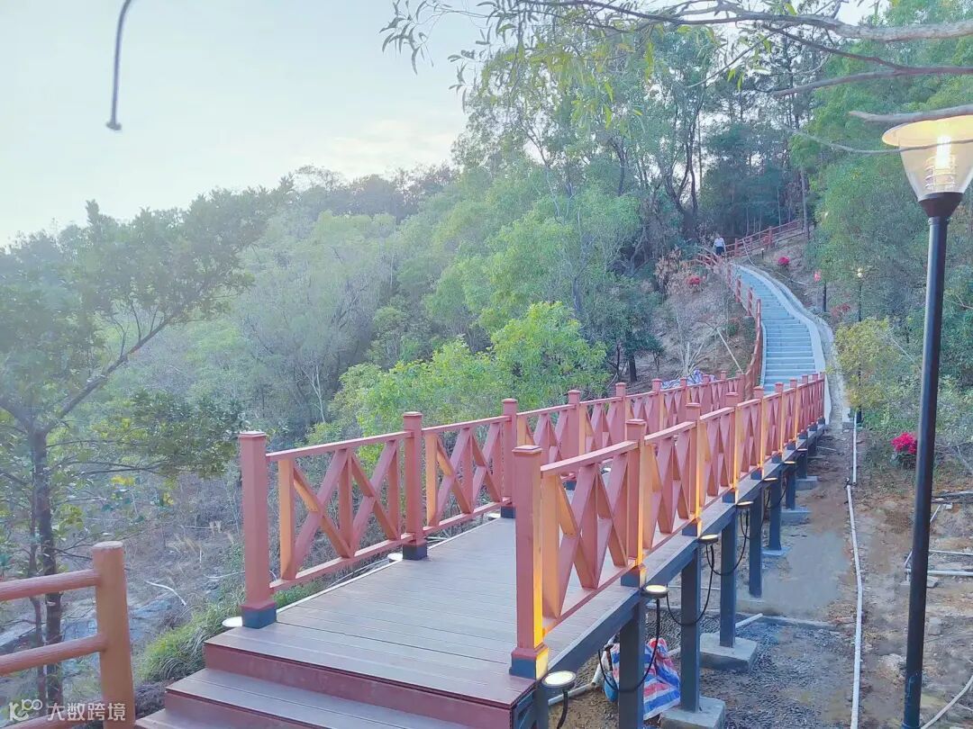 沿线更结合山体风貌设有观景平台3处、中途休息平台1处、廊亭小驿站2处,让大家歇歇脚、透透气,在山上凭栏远眺,可感受环山看镇、满眼皆绿所见即景的美好风光。