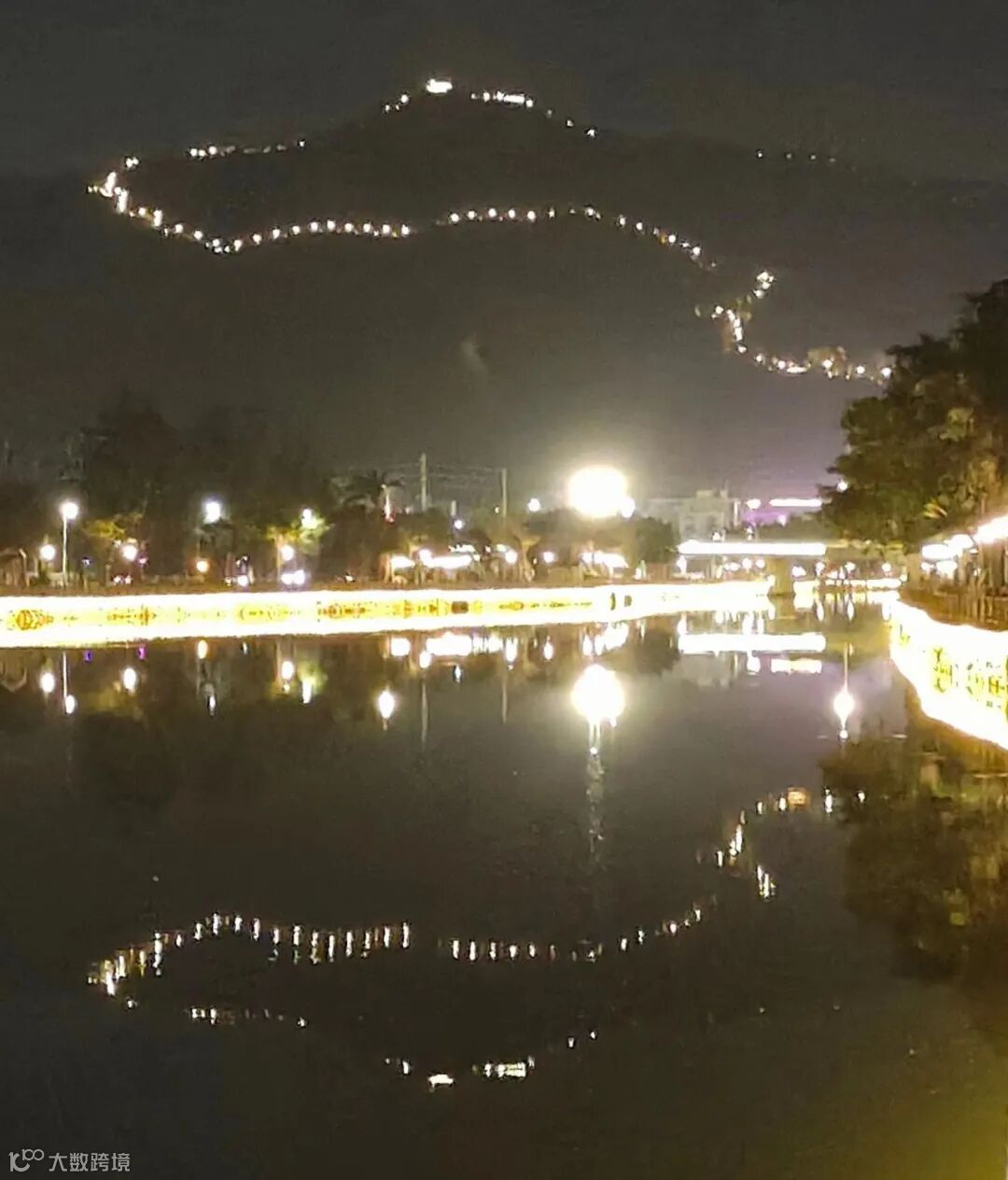 夜幕降临,华灯初上,西侧步道新安装草坪灯155套、埋地射灯32套、鸟巢灯335套等,灯光以“之”字形如龙盘旋至山顶平台,蜿蜒的造型如一条吉祥的金龙为平沙人民献上新春贺舞,与一河两岸夜景、城镇小区万家灯火、主次干道灯光形成有机整体,为平沙夜景增添几分浪漫氛围。