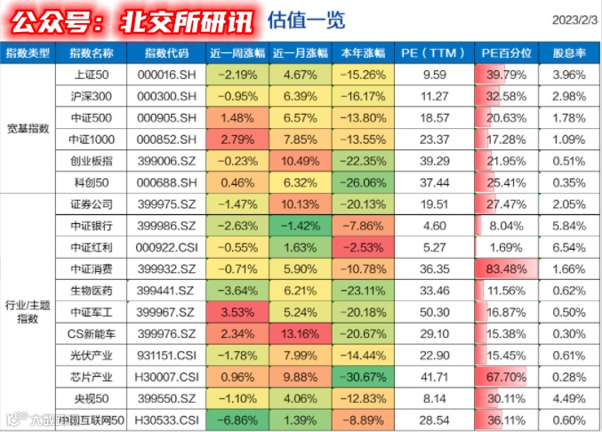 本周迎来兔年首个交易周,三大股指除深圳成指本周小幅上涨外,上证指数及创业板指均微幅下跌。具体来看,本周上证指数跌0.04%、深圳成指涨0.61%、创业板指跌0.23%。本周北向净流入超340亿,其中周五净流出,沪深两市日均成交额在万亿附近。