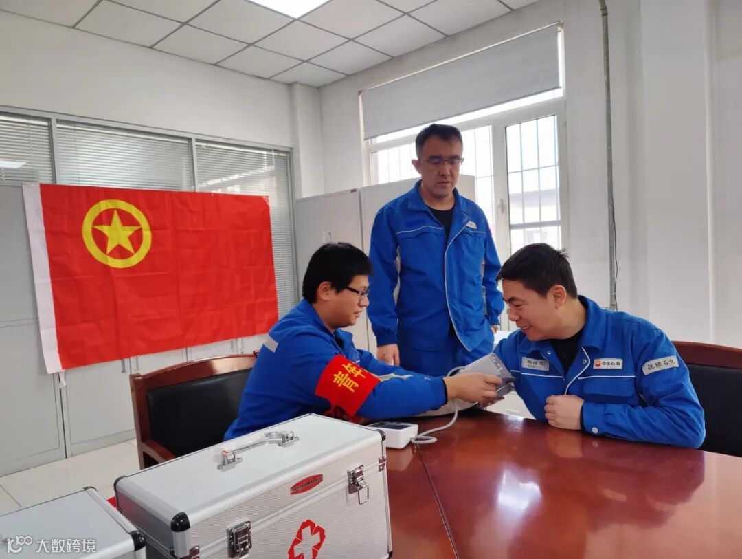 磺化车间组织青年员工对在岗职工进行测量血压、血糖等健康监测活动,并进行登记,为员工建立“健康监测档案”。