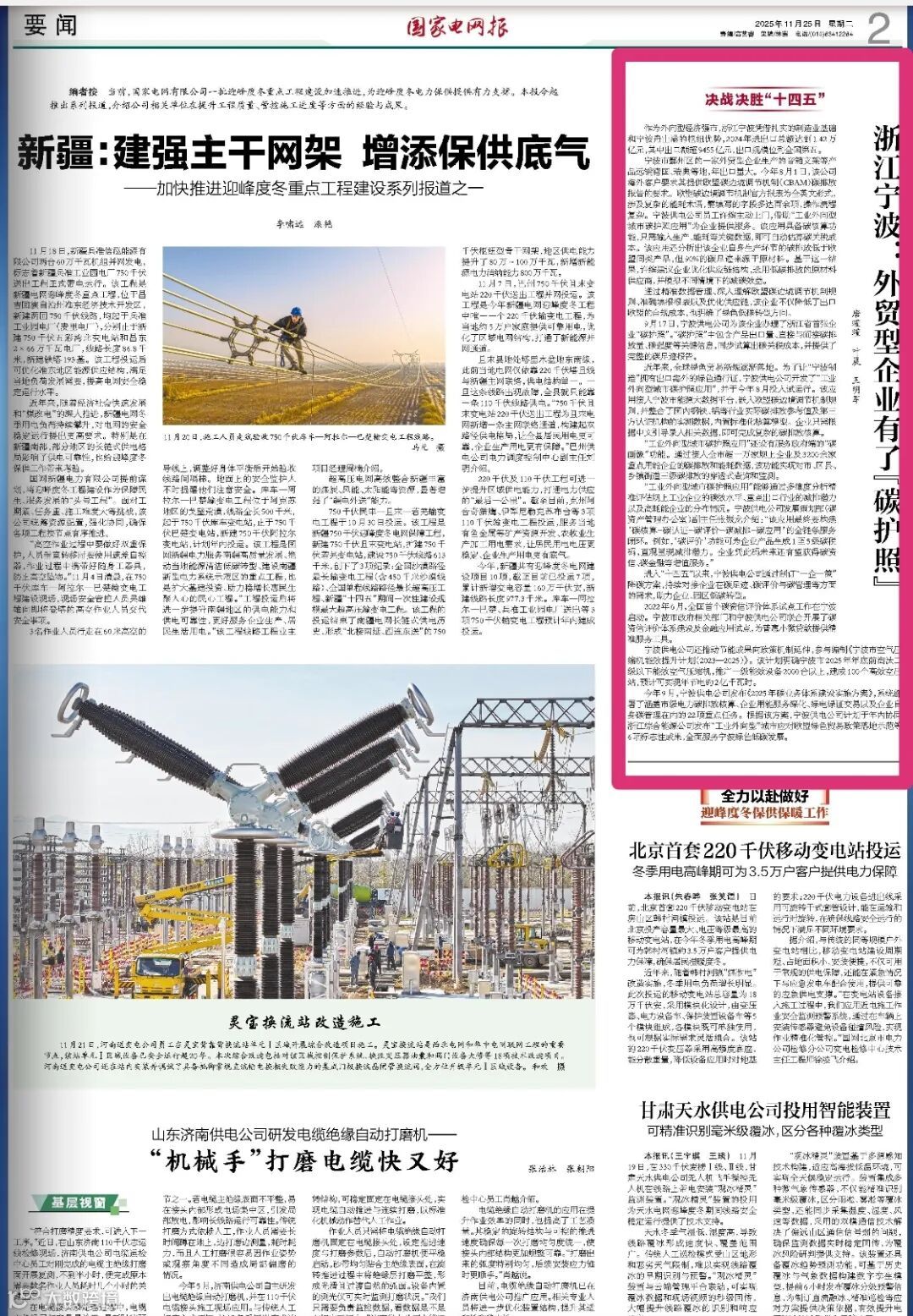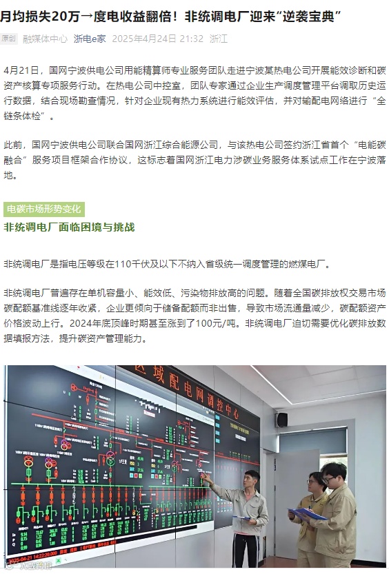 全省首个涉碳业务服务体系在宁波落地,为面临电、碳双重压力的企业提供系统性解决方案。该创新实践获《国家电网报》、《电网头条》、《浙电e家》等行业权威媒体深度报道,树立了电碳协同机制探索的“宁波样板”。