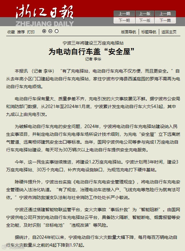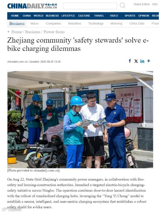 为解决居民充电难题而打造的电动自行车充电驿站,因其安全、便捷与智能化特色,登上了《浙江日报》、《中国日报》英文网、新华社等具有外宣影响力的平台,体现了公司在民生服务领域的细致关怀。