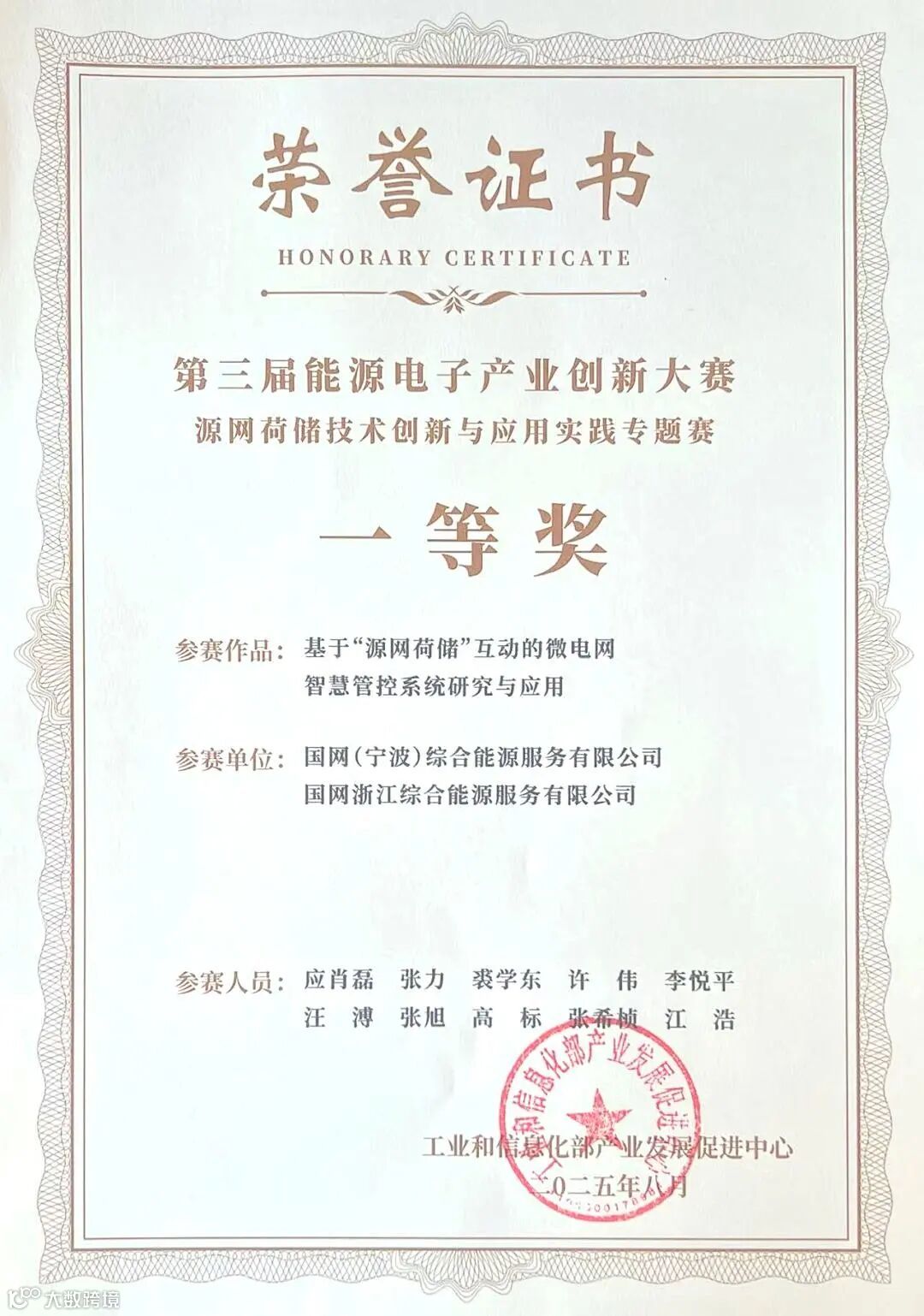8月21日,在第三届能源电子产业创新大赛中,公司《基于“源网储荷”互动的微电网智慧管控系统研究与应用》项目脱颖而出,斩获源网荷储赛道一等奖。