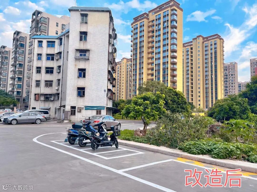 改造后,人车通行更加顺畅;路面平整了,小区不再逢雨必涝;废土荒地不见踪影,取而代之的是清爽干净的外墙、宽阔整洁的路面、井然有序的车位……