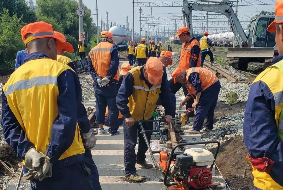 营销调运部圆满完成“赶烤”铁路大修之路。二厂调运车间工厂站55#道岔,因既有道岔为土质道床易产生积水,不仅在夏季经常造成路基翻浆冒泥,大大降低了路基承载力,而且在冬季,也因为路基含水量过大造成道岔冻胀,使轨道结构尺寸严重超标,严重危及行车安全。车间将道岔列为本年度大修项目,在大修具备条件实施之前定期检查枕木、道钉、鱼尾板,发现异常立即进行更换。在施工初期,车间强化前期准备落实,主管领导积极与施工单位多次对接确定施工方案,制定具体施工进度计划,要求施工单位强化预制并提前将材料运至施工现场附近。7月18日正式开始施工后,车间管理人员深度介入,盯在现场,认真组织班前喊话,识别风险,严控施工网络排布,在确保施工质量的前提下合理压缩工期,克服高温酷暑等困难,经过连续两天加班加点的施工,终于在20日早9点圆满完成施工任务并正式通车,比预计工期提前8小时,为公司产品安稳运输提供了坚实的保障。