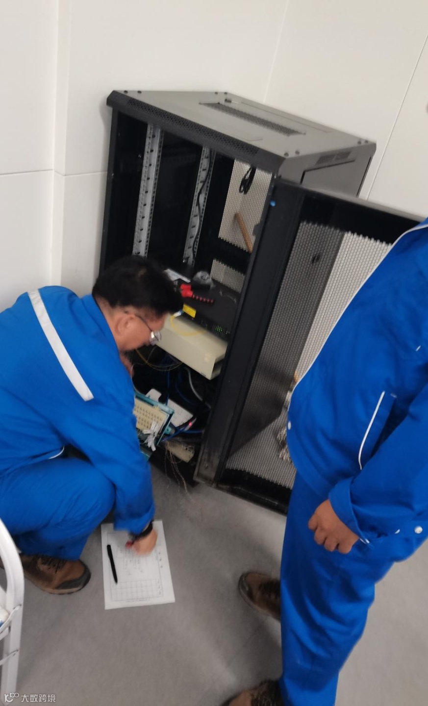 6月25日早6点搬迁工作正式开始,信息管理部相关工作人员全部到达现场,技术人员分成三组,一组负责光缆跳接,二组负责网路布线,三组负责配置交换机,按照预定方案有条不紊迅速推进。机房空间较小,工作人员需要反复进进出出、上上下下,每一个动作都必须十分小心谨慎,正值夏季高温天气,员工们承受着高温和闷热的考验,工作服湿透了一次又一次,背后都是白白的汗渍。