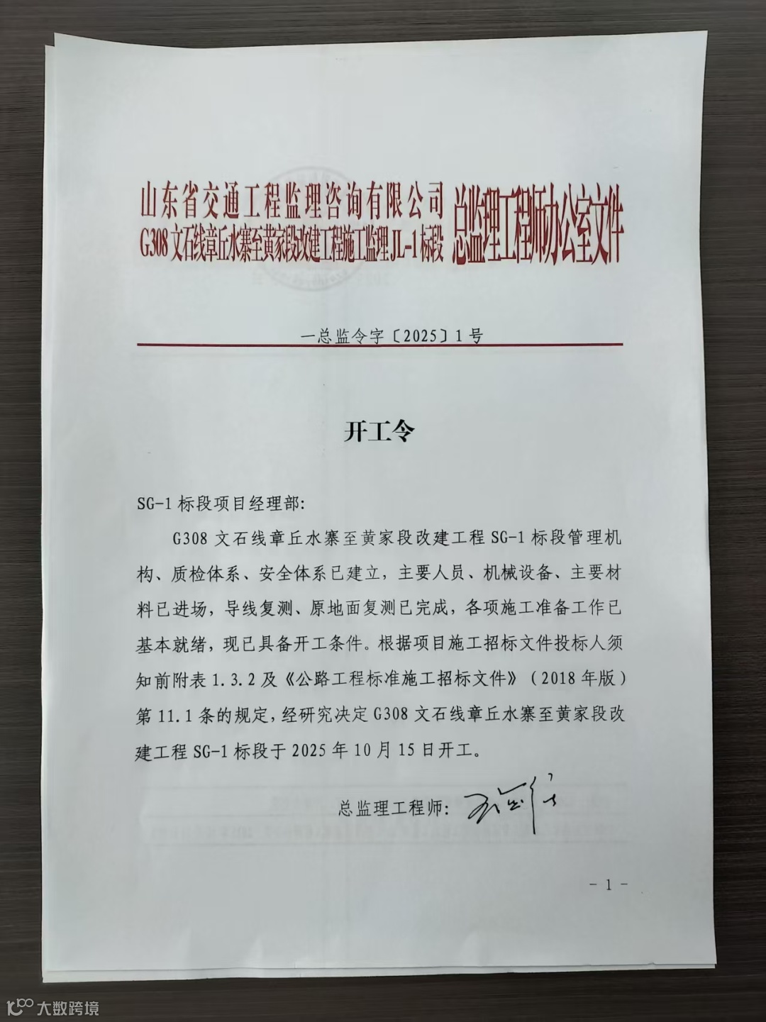 随着项目开工令正式下达,公司将以此次开工为起点,秉持精益求精、质量为先的建设理念,严格遵循工程规范要求,狠抓施工安全、严控工程质量、紧盯工期节点,全力将G308文石线章丘水寨至黄家段改建工程SG-1标段打造为优质工程、民生工程。未来,公司将持续发挥交通建设领域专业优势,为完善区域交通网络、服务地方经济社会高质量发展贡献“通达力量”。