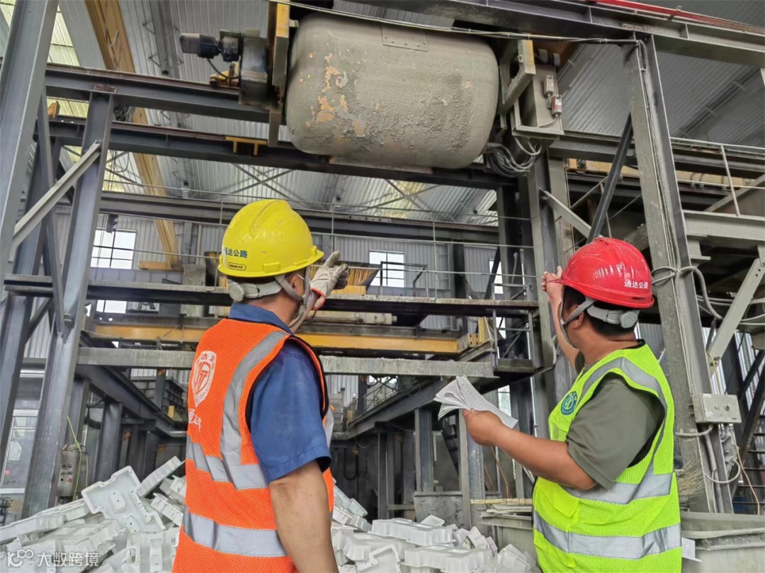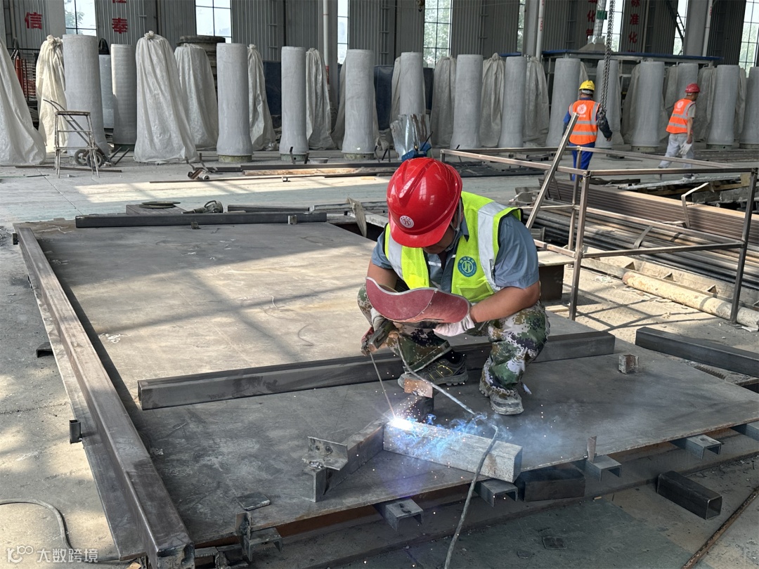 拌合站内的混凝土运送装置,是一个白色“鱼雷”模样的金属罐,被称为“鱼雷罐”。沿着空中轨道,它会将肚子里配好的混凝土,运送到小型预制生产线,在那儿完成预制件的混凝土浇筑。用上“鱼雷罐”,混凝土像坐上了“空中专车”,减少了地面大型车辆的往来、提升了安全性,生产效率能提高2倍。