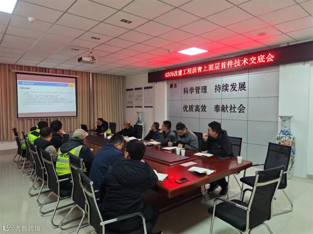 为确保沥青上面层施工质量,项目部召开沥青上面层首件技术交底会,对原材料质量和技术要点、难点进行层层交底。会议要求要紧盯沥青原材料全过程运输,严格把控摊铺和碾压温度、速度及松铺厚度等工艺参数,对摊铺施工进行全程监控,确保摊铺层平整度、厚度及压实度等关键指标符合标准要求。