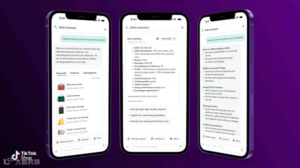 据外媒报道,TikTok宣布在其卖家中心上线一款AI驱动的“卖家助手”工具,旨在为品牌和商家提供智能化支持,优化产品管理与营销流程。