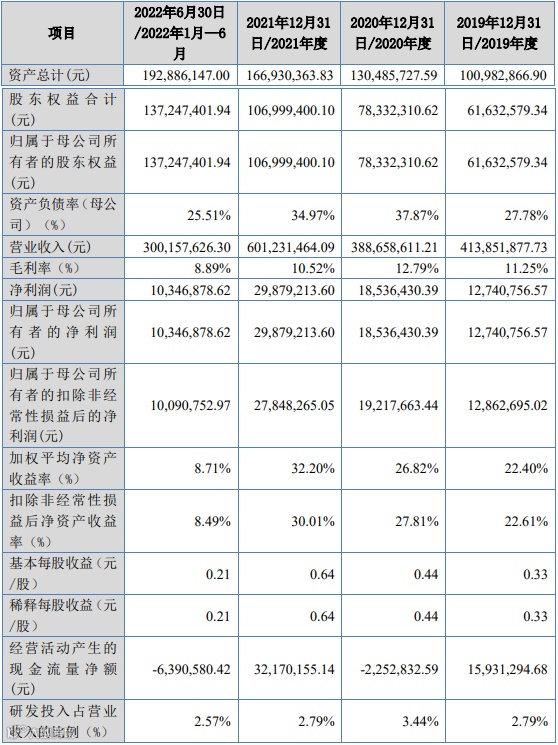 2019年度、2020年度、2021年度及2022年1-6月,公司分别实现营业收入41,385.19万元、 38,865.86万元、60,123.15万元和30,015.76万元。报告期内,公司主营业务没有发生重大变化。