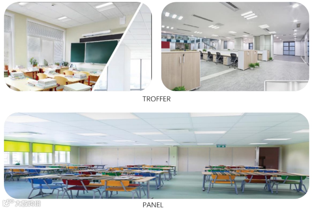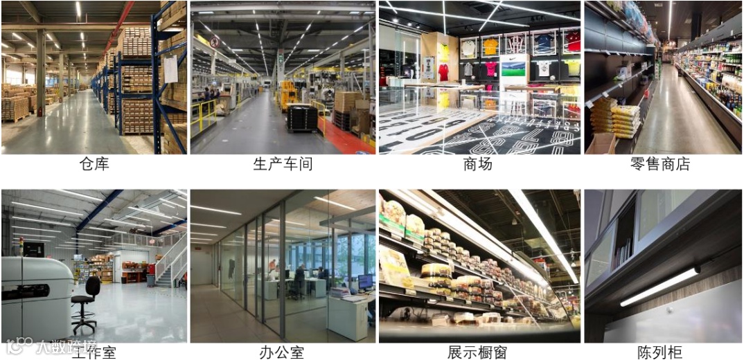 公司 LED 灯具产品分为工业照明和商业照明两类。工业照明主要为高天棚灯产品,商业照明包括线条灯、灯盘灯。高天棚灯指应用于工厂、仓库等生产作业区中使用的灯具的总称。线条灯指外观形状为线条状的照明灯具。灯盘灯指将 LED 模组和驱动安装在灯盘外壳内的照明灯具。