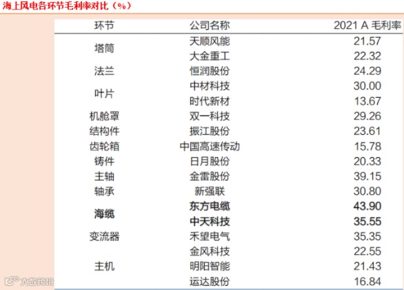 风电产业链中,海缆是盈利能力最强的环节之一,毛利可达40%-50%。