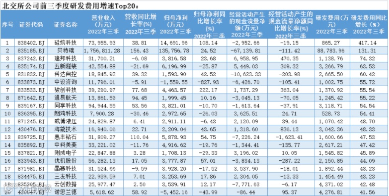 根据三季报研发费用增速排名,有10家公司研发费用同比增长超50%,两家公司翻倍增长,其中硅烷科技虽然不是研发费用投入金额最多的,但是以四倍的增长速度位居榜单第一,可见其对研发创新的重视,其次是贝特瑞研发投入3.84亿元,同比翻倍增长。