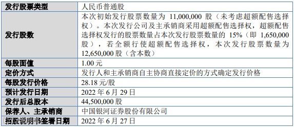 惠丰钻石(839725)发行价28.18元/股,发行市盈率26.01;发行数量1100万股;发行代码为889955。