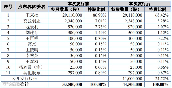 注:本次发行后公司总股本为 44,500,000 股(超额配售选择权行使前),若全额行使超额 配售选择权,则发行后公司总股本为 46,150,000 股。