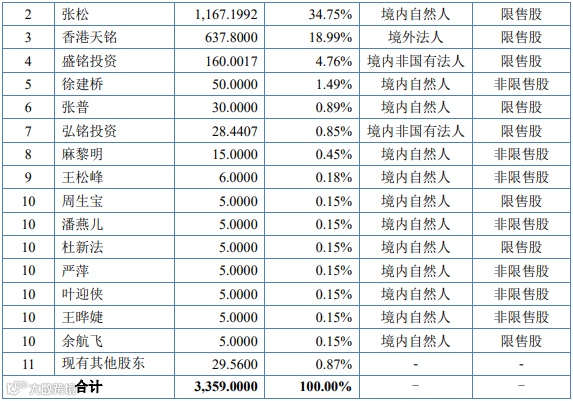 注:行使超额配售选择权之前发行后总股本为 43,590,000 股,若全额行使超额配售选择 权则发行后总股本为 45,090,000 股。