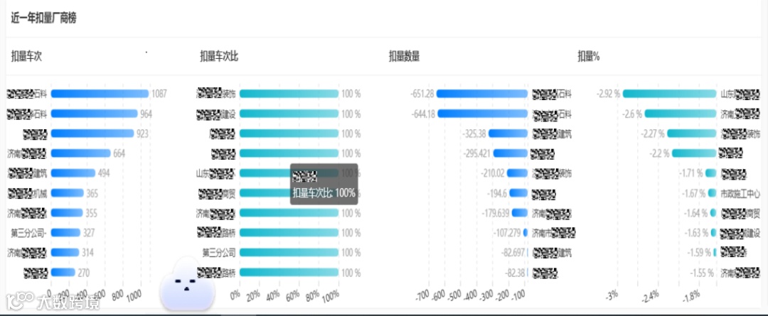 通过物料系统统计分析,公司本年度所有材料扣量达2700方左右,成本节约可达50万元左右,扣量工作仅济南某石料有限公司就扣除1087车次、扣量650余方。