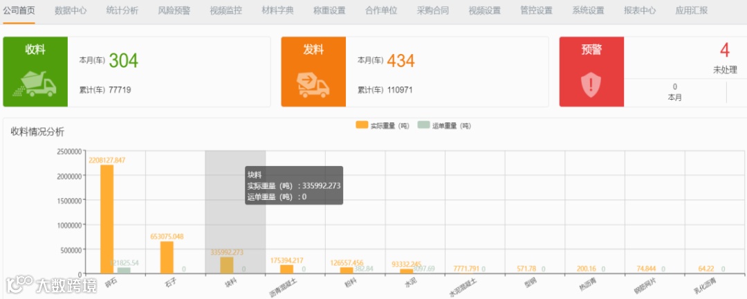 截止目前,公司下属的8个厂站在用广联达智能物料验收系统,累计至今过磅车次达18.87万车次,收料7.8万车次左右、发料11.1万车次左右,单日过磅车次最高达409车次。