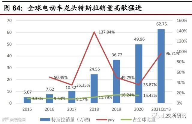 今年以来美国电动车销量加速增长。美国电动汽车市场持续快速发展(注:这里 的电动车主要指 BEV/PHEV/FCEV),2011~2020 年销量从 1.62 万辆增至 31.96 万辆,年复合增速达 39.25%,其中,2019/2020 年同比变动-2.19%/-0.94%,增 速明显放缓,主要受政策退坡及疫情影响。今年前十月美国电动车销量 45 万辆, 同比增长 186%,渗透率提升至 3.54%。拜登政府:重视电动车产业发展,政策加码可期。3 月 31 日发布的美国《基础设 施计划》,拜登政府提议投资 1740 亿美元支持美国电动汽车市场发展,内容涉及 完善国内产业链、销售折扣与税收优惠、到 2030 年建 50 万个充电桩、校车公交 及联邦车队电动化。