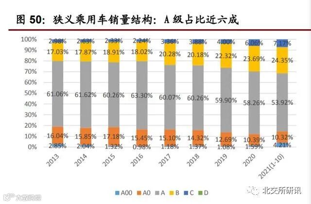 2、在新能源汽车下乡的持续推动下,中低端车型市场 需求整体较旺盛,根据乘联会数据,10 月 A00 级纯电动份额为 31%,A0/A 级纯 电动份额 17%/25%。我们认为,在“双碳”目标下,中央和地方政府继续大力 支持和推动新能源汽车的发展;同时,新能源车企持续发力,自主车企、造车新 势力及主流合资车企都在积极推出新车型。