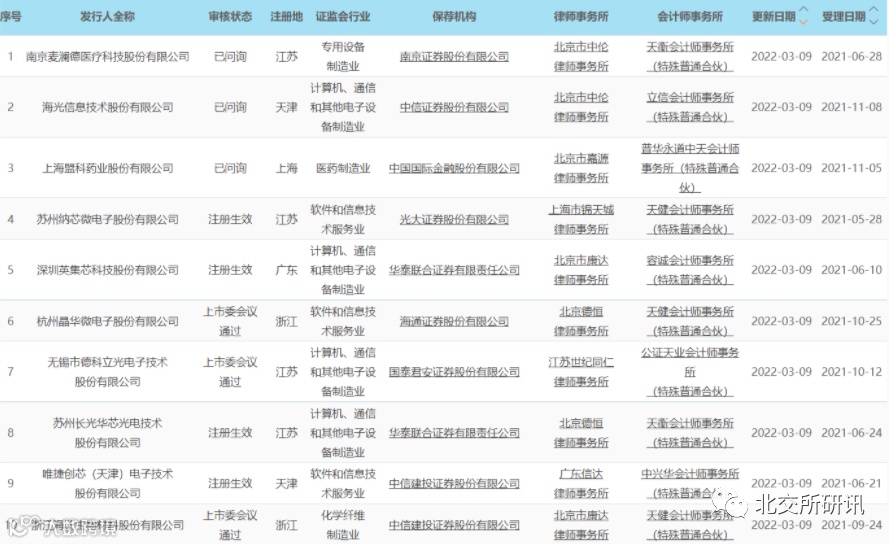 10家科创板拟上市公司发审状态更新
