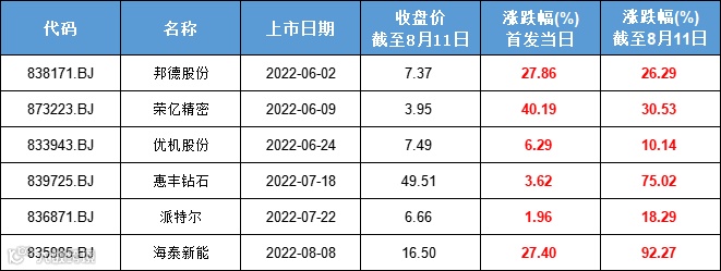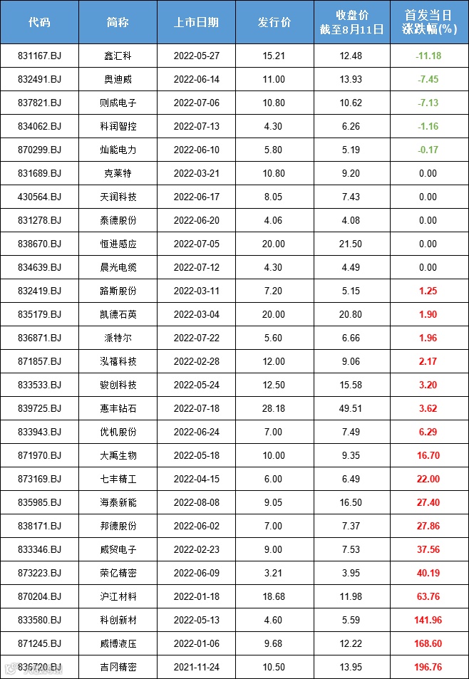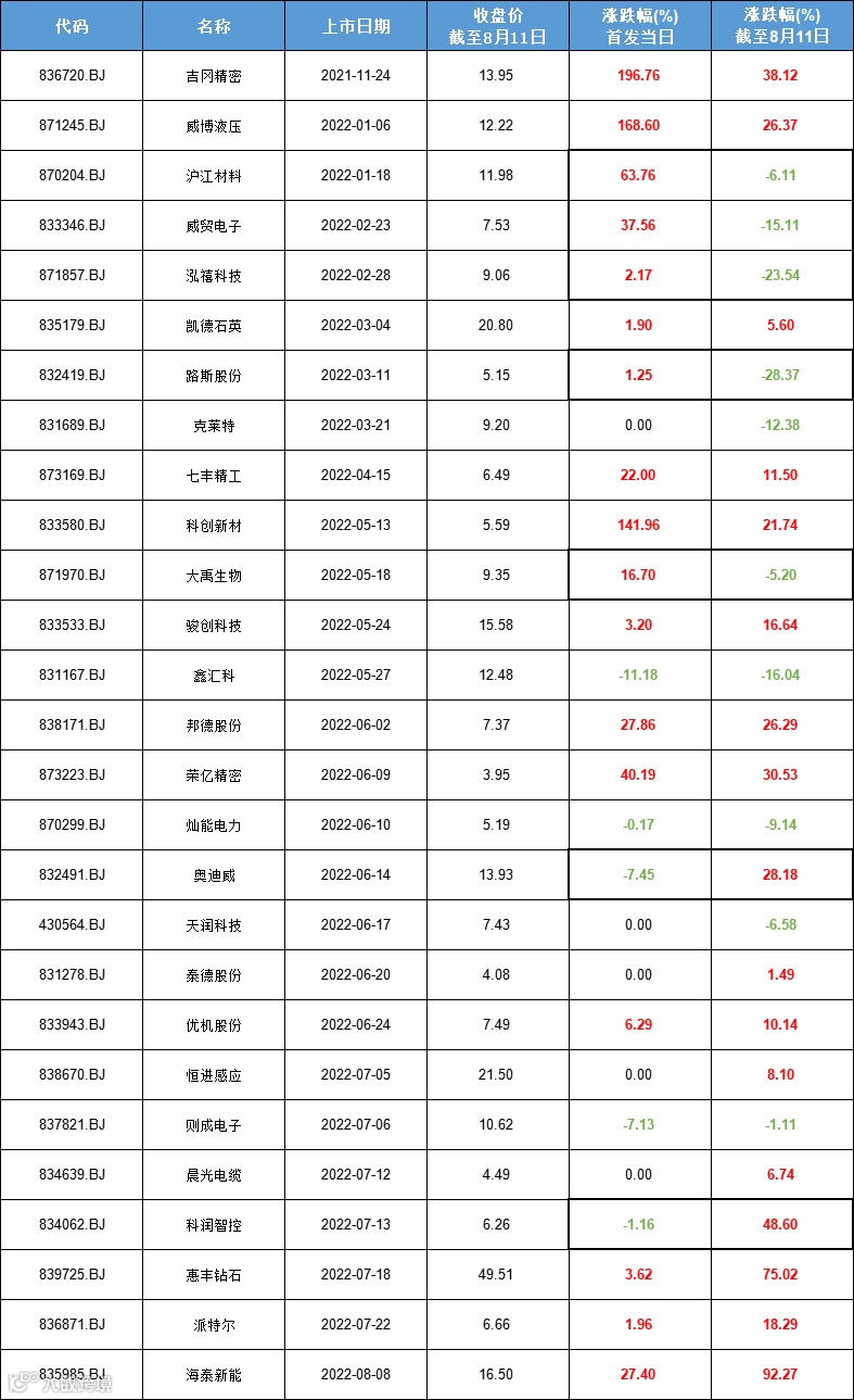 从去年的11月15日北交所开市以来,除去首批上市和精选层转板的81家公司,北交所已上市的次新股累计共有27只。