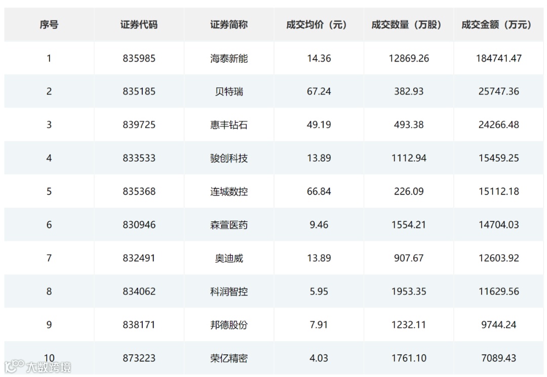 北交所本周整体小幅收跌,光伏组件、汽车零配件、电气设备表现强势。居于涨幅榜首位的是海泰新能,本周录得70.16%的涨幅;骏创科技、邦德股份次之,涨幅分别为26.32%和17.08%,本周个股平均涨幅为3.61%。