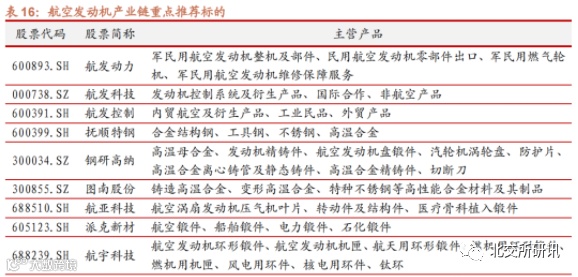 1、航发集团在产业链上具有绝对垄断地位,有望最先受益,重点关注:航发动力、航发控制、航发科技。