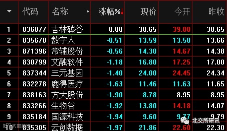 截止到9月27日上午收盘,精选层和创新层的涨幅前十的个股表现。