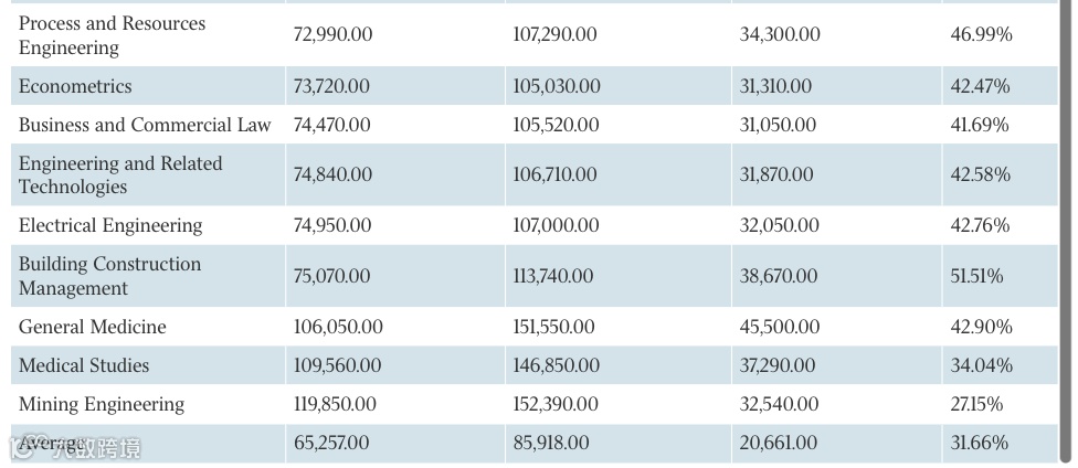 管理与商科专业略显平淡,工作五年后平均年薪87,980澳元,低于毕业生总体平均水平。