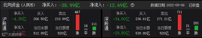 盘面上,医疗器械、养殖、银行等板块跌幅居前。沪深两市总成交额8691亿,较上个交易日放量994亿。而北上资金,则在今日净流出38.99亿,依旧是大幅卖出态势。