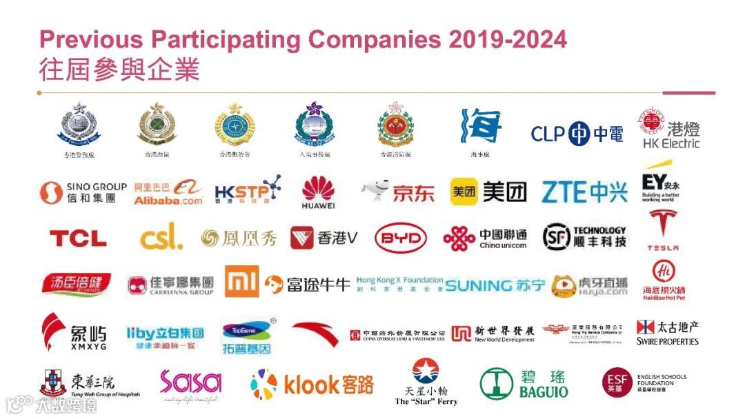 参展企业阵容群星闪耀。汇丰银行、恒生银行、HKT、腾讯、迪士尼、大公文汇、凤凰卫视、嘉华国际、中国建筑、安基司国际学校等,涉猎金融服务、信息科技、制造业、教育、房地产及零售各个领域。