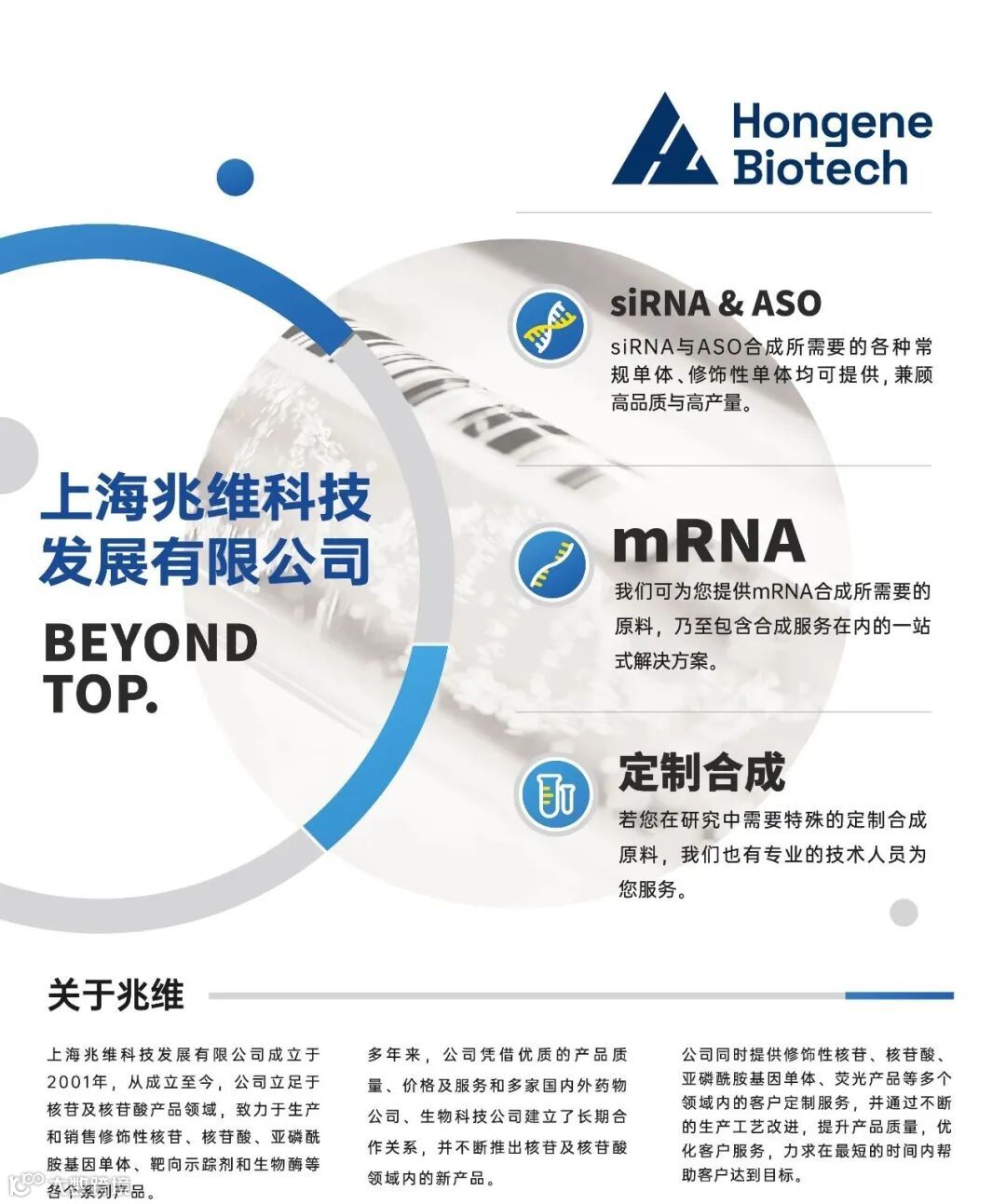 通过与合作伙伴的紧密协作,兆维科技助力释放核酸的无限潜力,推动全球范围内的创新治疗方案,为患者带来改变生命的医疗突破。欲了解更多关于兆维科技及其核酸产品的信息,请访问官网www.hongene.com 并关注我们的公众号 “上海兆维 Hongene”。