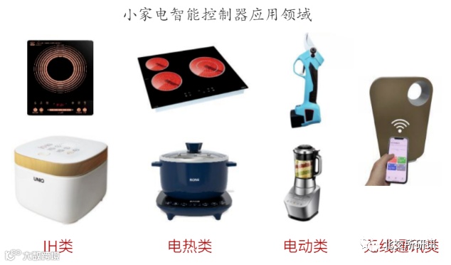 小家电智能控制器 智能控制器是以智能控制芯片或数字信号处理器芯片为核心,并与其他电子零部件、嵌 入式计算机软件、塑胶五金结构件等镶嵌在 PCB 上获得的具有自动控制功能、传感功能、 无线通讯功能等一体化的高科技产品。智能控制器作为核心部件内置于设备或系统中,控制 其完成特定的功能要求,系智能产品的“中枢神经”或“大脑”。公司小家电智能控制器主要应用于 IH 类、电热类、电动类、无线通讯类等产品上。
