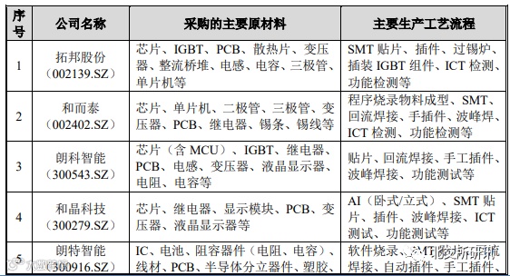 发行人与同行业可比公司生产智能控制器采购的主要原材料以及主要生产工艺流程对比如下: