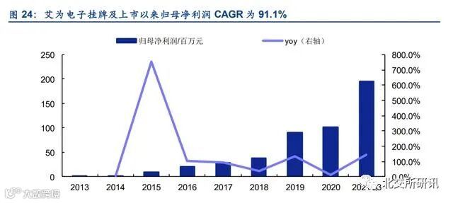 为第 2 批入选专精特新的企业,2021 年 6 月 18 日摘牌新三板(新三板股票代码:833221),2021 年 8 月 16 日成功转板上市科创板。挂牌新三板期间(2013-2020 年),7 年营收 CAGR 达 58.0%,归母净利润 CAGR 达 91.1%。