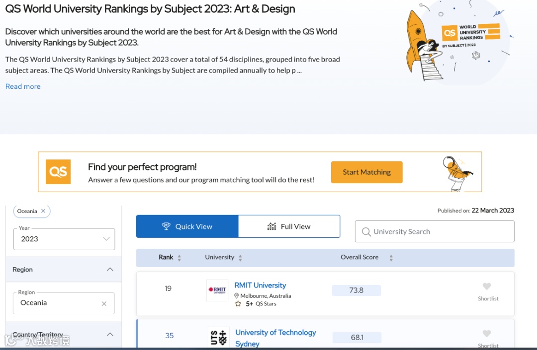 皇家墨尔本大学在最新QS的艺术与设计学科排名中全澳第一,世界第十九。