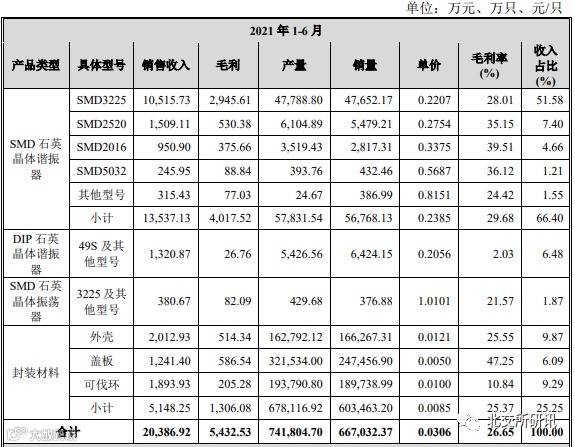 【主营业务】从事石英晶振及封装材料的设计、研发、生产及销售,系国家高新技术企业、安徽省创新型企业、安徽省专精特新中小企业、省级认定企业技术中心。公司产品主要分为石英晶振和封装材料两类。石英晶振产品包括各类型石英晶体谐振器和石英晶体振荡器。封装材料产品主要包括各类型石英晶振封装外壳、可伐环等,为石英晶振上游材料,另有少量其他电子元件外壳等。石英晶振是利用石英晶体的压电效应制成的频率元器件,可以产生稳定的脉冲,为微芯片提供基准频率信号。石英晶振产生的基准频率信号主要有无线数据传输和时钟两种用途。石英晶振广泛运用于各类频率控制、频率稳定、频率选择和计时系统中,特别适用于对频率准确度要求较高的电子产品,如通信网络、移动终端、物联网、汽车电子、智能家居、家用电器等领域,是各类电子产品不可或缺的基础元器件。