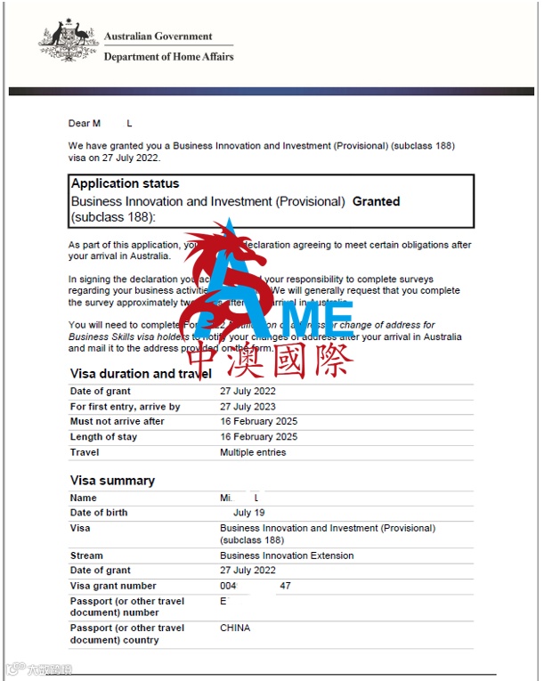 - 管理的生意申请人需拥有10%以上股份,或者,管理的投资需250万澳元以上