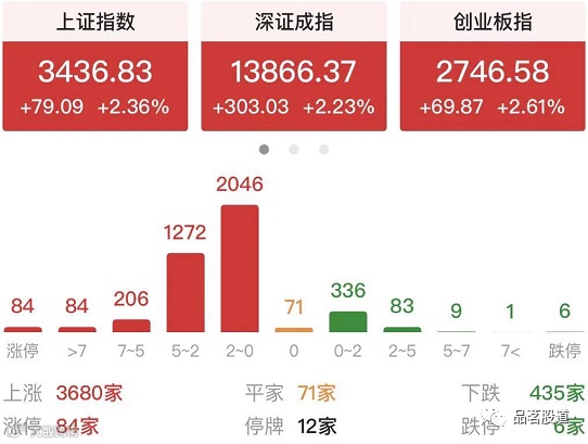三大指数全日走高,指数均涨超2%,供给侧的水泥、钢铁、有色、资源回收等周期板块全线暴风,两市个股普涨,北向资金净流入94亿,碳中和、有色金属、水泥、电力股领涨。