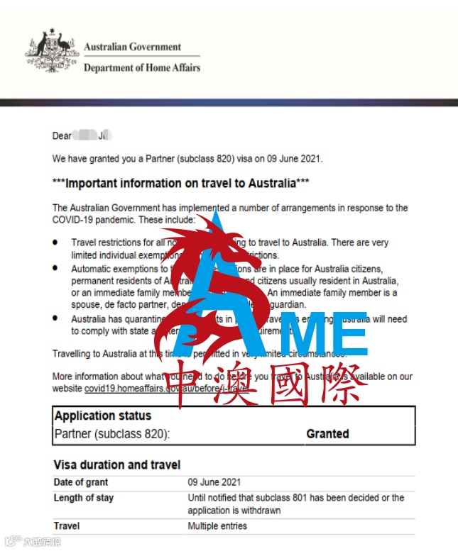 【喜报】恭喜客户配偶移民签证成功获批!申请材料不足中澳国际照样能解决!