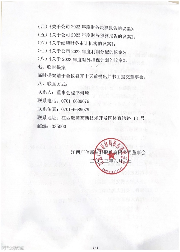 三、会议召集人:江西广信新材料股份有限公司董事会