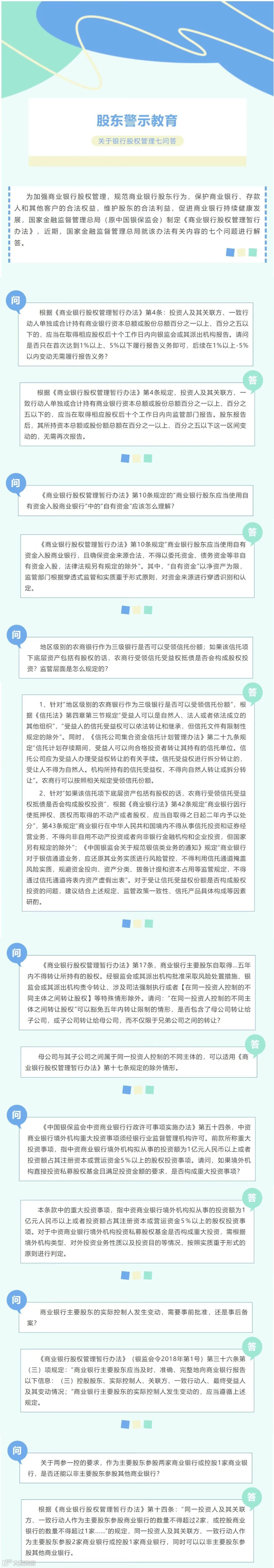 【股东警示教育】关于银行股权管理七问答