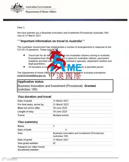 - 合规投资500万澳元到澳大利亚