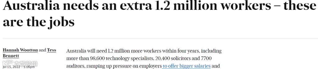 《澳洲金融评论报》报道称,澳洲未来4年内将需要增加120万名从业人员,包括超过9.86万技术专家、2.04万律师和7700名审计师。