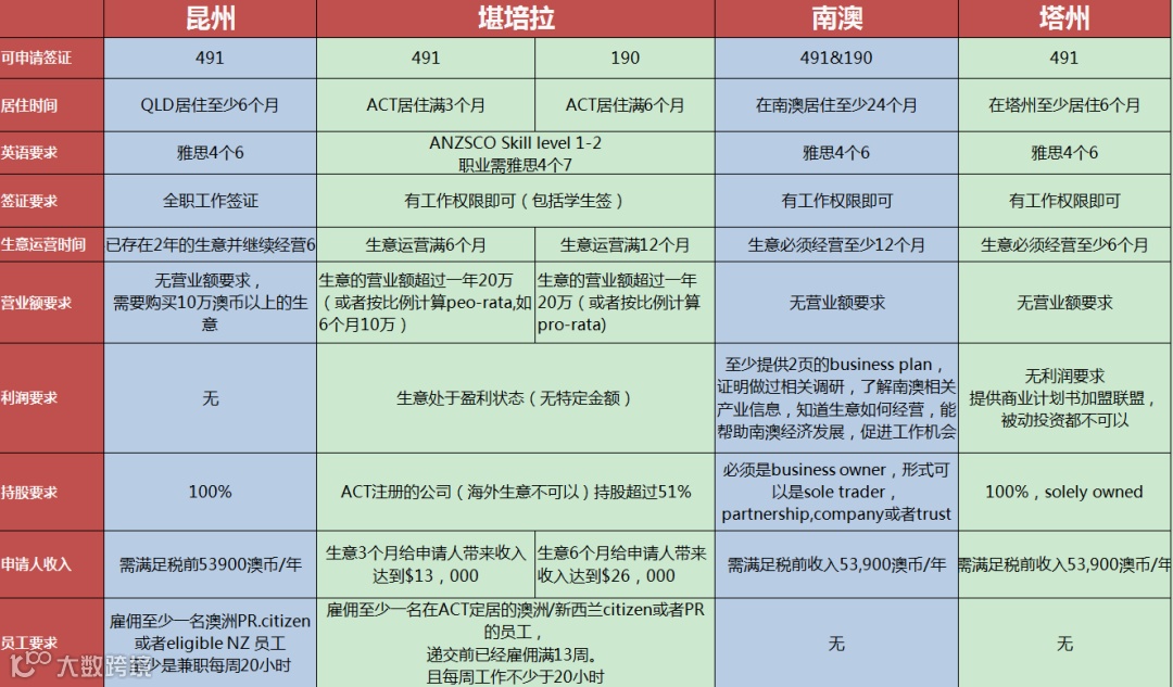 对于491和190的申请条件及政策都比较清晰,不像南澳小生意,没有投资金额要求,但是对于营业额要求比较高。 -